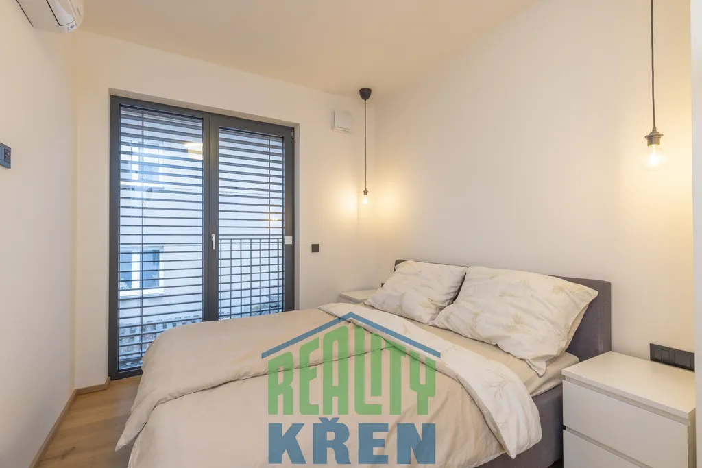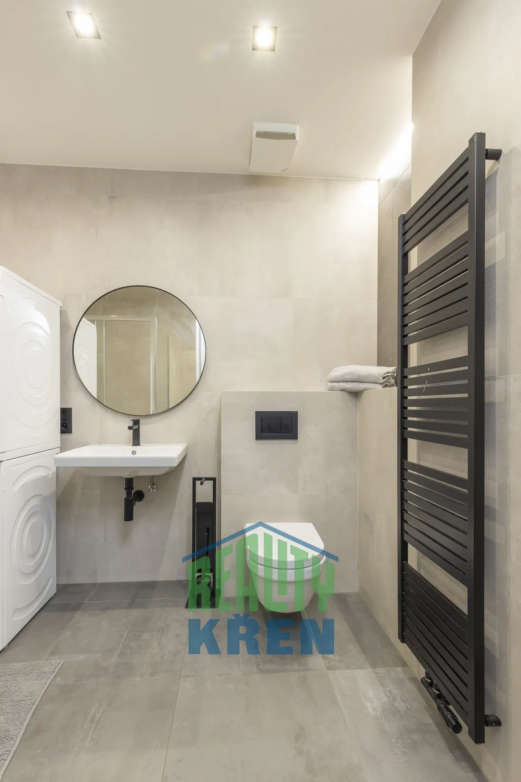 ložnicí o velikosti 12,2 m2 s prostornou vestavěnou skříní; vstupní halou s vestavěnou skříní a botníkem; koupelnou se sprchovým koutem, pračkou a sušičkou.