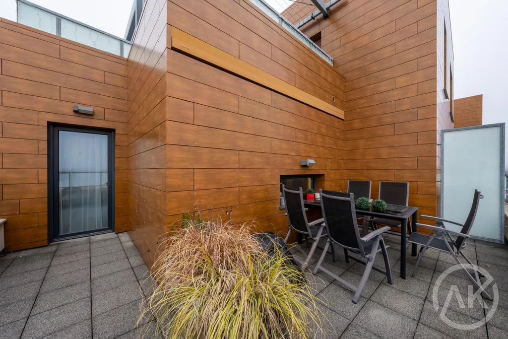 - dispozice úžasná. Téměř 80 metrů čtverečních uvnitř + cca 27 metrů čtverečních na terase a balkoně. Horní patro s výhledem, balkon z ložnice, terasa z obýváku, pracovna a dost místa na vestavěné skříně,