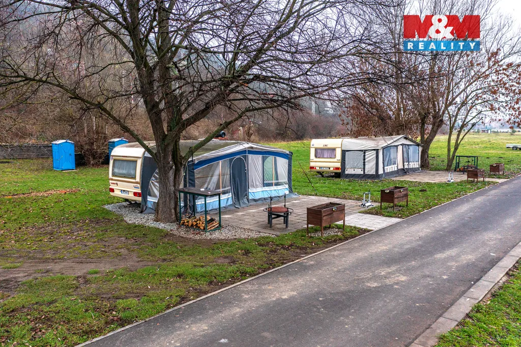 Pokud nejste milovníky zimního počasí, jistě vás zahřeje naše vyloženě letní nabídka zahrady s bonusem zaběhnutého podnikání s krásně a funkčně zařízenými karavany i s předstany přímo u Labské cyklostezky. Karavany se skládají z oddělené ložnice, samostatné kuchyňky s rozkládacím sezením a koupelny k běžné hygieně. Nabídka je vhodná nejen pro vášnivé potápěče, ale i rybáře, zahrádkáře, kutily. Místo nabízí mnoho netušených možností. Navíc každý karavan má i své molo s vlastní loďkou. Kdykoliv budete potřebovat plout proti proudu, nic vám nebrání. Jen si to představte, západ slunce v odlesku řeky nebo naopak ranní probuzení u mola s lahodným šálkem kávy či čaje. Nebo večery s přáteli u grilu. Na tomto místě v Křešicích u Litoměřic není nic nemožné, nijak vzdálené, ať po proudu řeky, silnici, či kolejích, A třešinkou na dortu je pak luxusní mobilheim o velikosti 11x 3,7 m tedy cca. 40 m2, s venkovním sezením 55m2, připojený na užitkovou vodu a bio odpad. Přijďte a vnímejte všemi smysly.