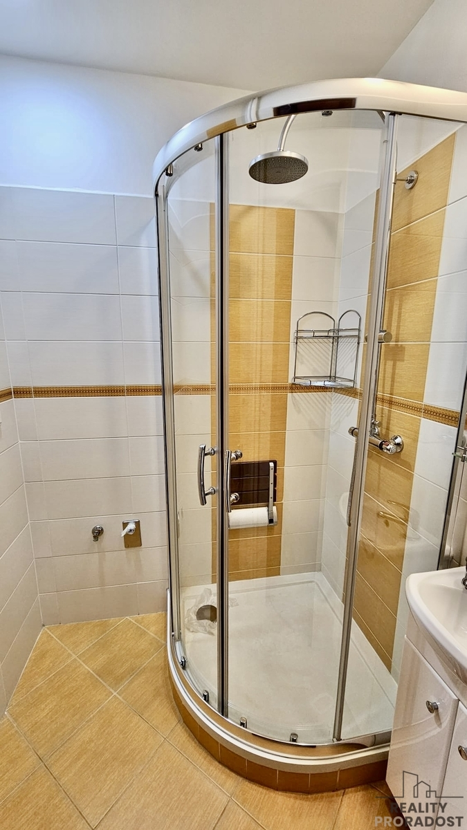 -Koupelna se sprchovým koutem a prostorem pro pračku