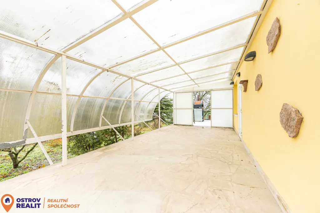 Na dům navazují vedlejší stavby, z nichž první tvoří prostorný průchozí sklad. Ten vede do druhé části zahrady, která dříve sloužila jako užitková. Nachází se zde také prostor pro chov drobných zvířat a skleník, který je ideální pro pěstování zeleniny či rostlin.