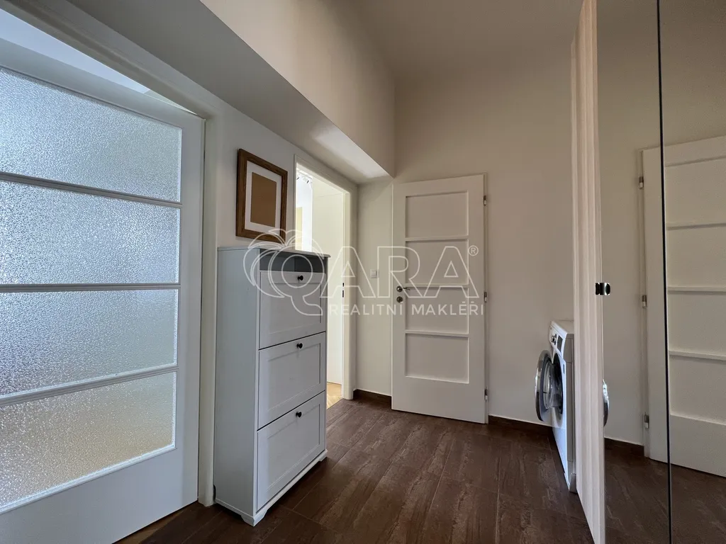 Jedná se o nájem zařízeného bytu 2+kk o velikosti 48m2 v činžovním domě s výtahem po rekonstrukci, který je umístěn v 5.NP. Byt prošel také kompletní rekonstrukcí. Je vybaven kuchyňkou linkou se spotřebiči včetně nádobí, koupelnou se sprchovým koutem a wc.