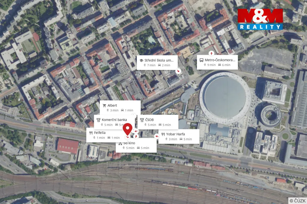Nabízíme k prodeji sklepní kóji o výměře 2,4 m², která se nachází v suterénu domu v ulici Kurta Konráda. Budova se nachází v těsné blízkosti O2 Arény a jen pár minut chůze od stanice metra B – Českomoravská, což zajišťuje výbornou dostupnost.