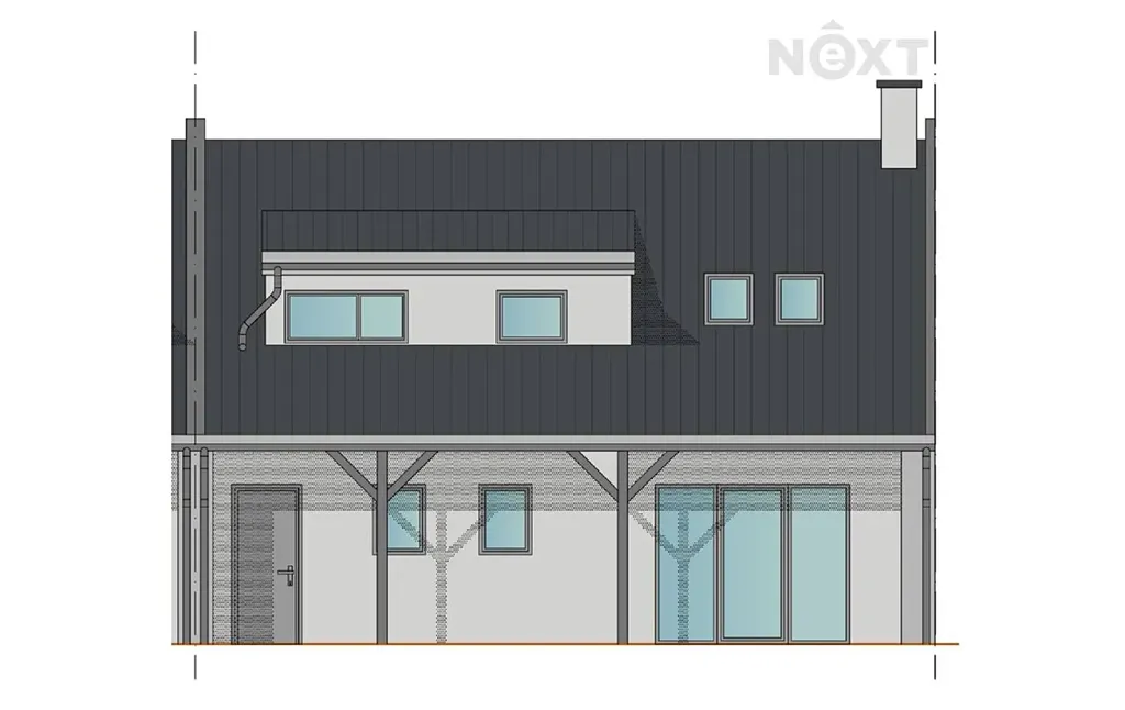 Dispozice domu: 1. NP: Vstupní zádveří navazuje na chodbu se schodištěm, ze které se vstupuje do velkého obývacího pokoje s kuchyňským koutem. Z obytného prostoru je přímý vstup na zastřešenou terasu a zahradu. Z chodby je přístupná garáž, sociální zařízení a také technická místnost s dalším vstupem na terasu.