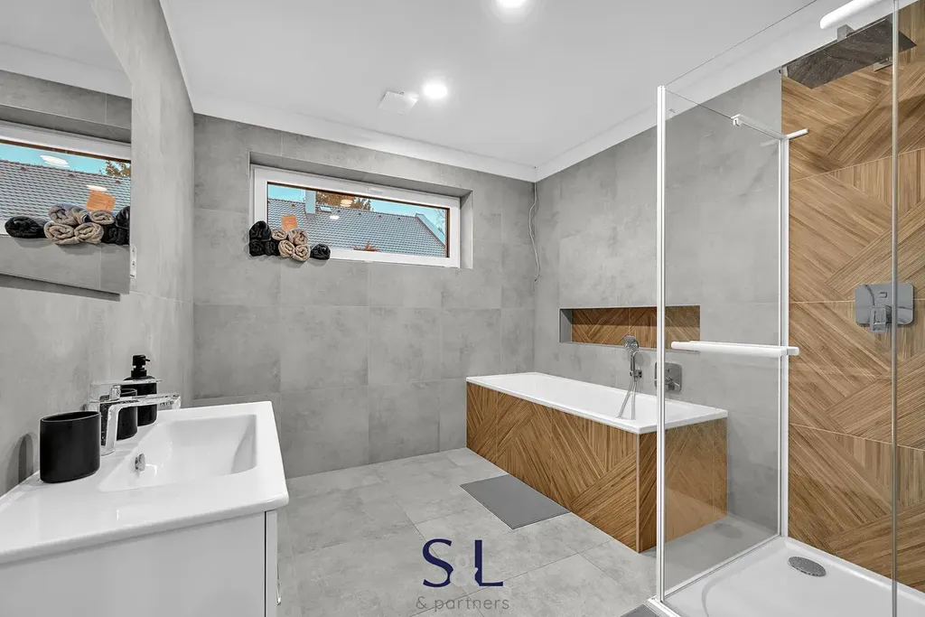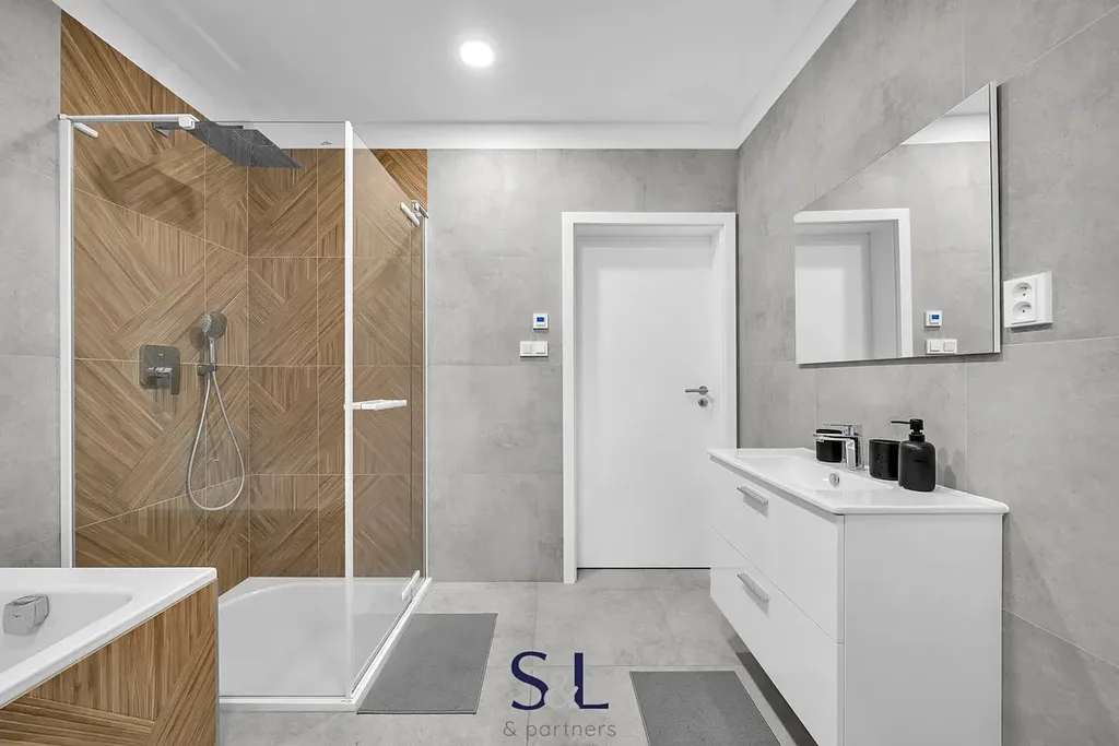 Dům je nyní řešen jako 3+kk s možností úpravy na 4+kk. V přízemí najdete koupelnu s vanou i sprchovým koutem, samostatné WC a technickou místnost.