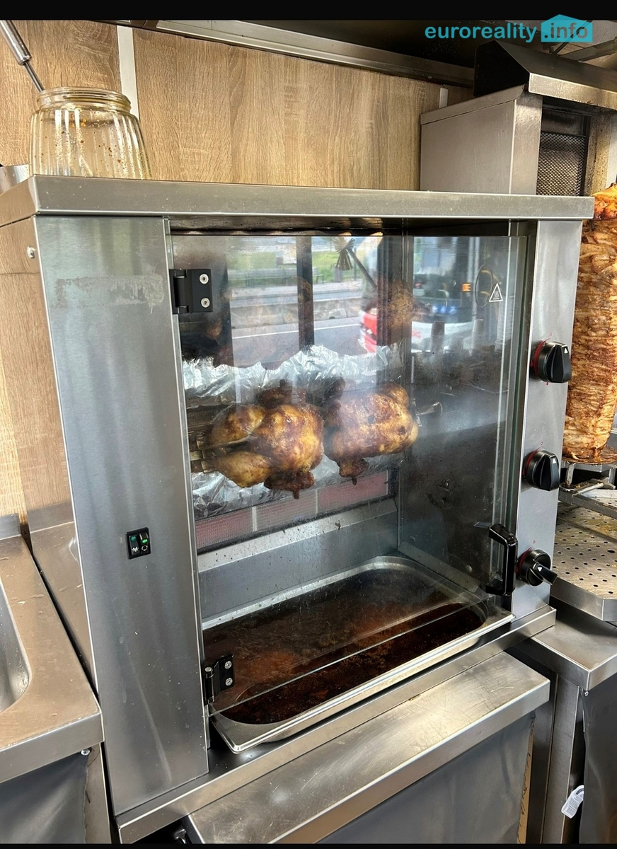 K pronájmu se nabízí plně vybavený digestoří, 2x lednicí, 2x mrazákem, plynovým grilem na kuřata a na kebab, fritézou, kávovarem, venkovním grilem, vitrínou na saláty a omáčky,...seznam předložíme vážným zájemcům.