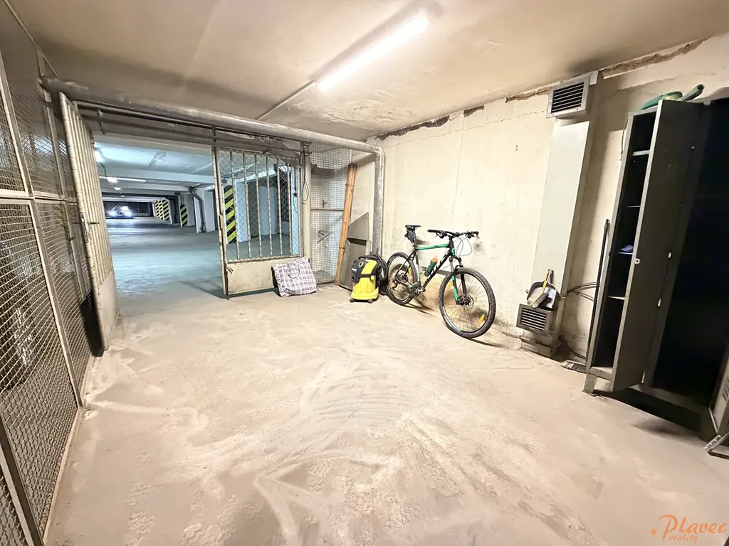 Stání se nachází v suterénu domu, kde je celkem 34 míst oddělených kovovými, uzamykatelnými mřížemi. Je zde přivedena elektřina.