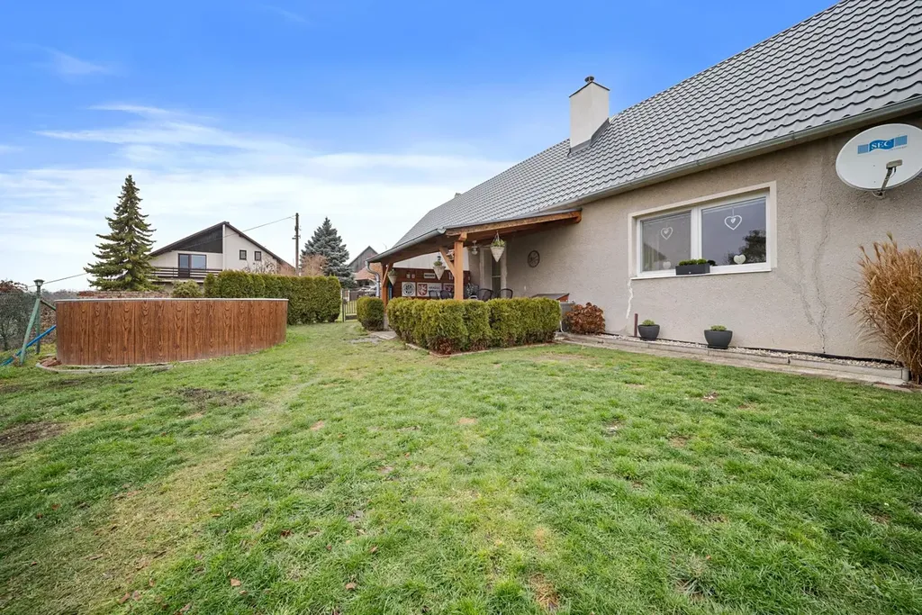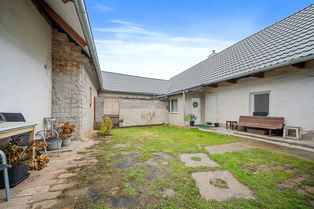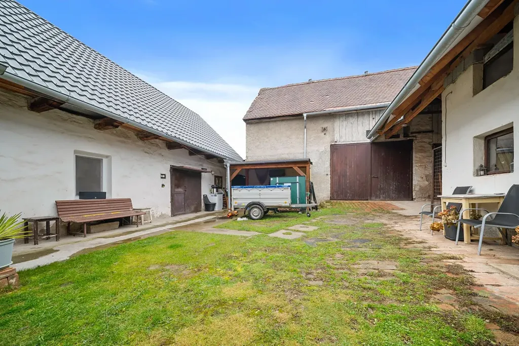 Dům stojí na pozemku o celkové výměře 502 m a součástí prodeje je také stodola, dvě kolny a garáž, které poskytují dostatek prostoru pro skladování, dílnu nebo drobné podnikání. Užitná plocha domu činí 172,98 m2, stodola má 149 m2, kolna 96,35 m2 a druhá kolna 58,80 m2
