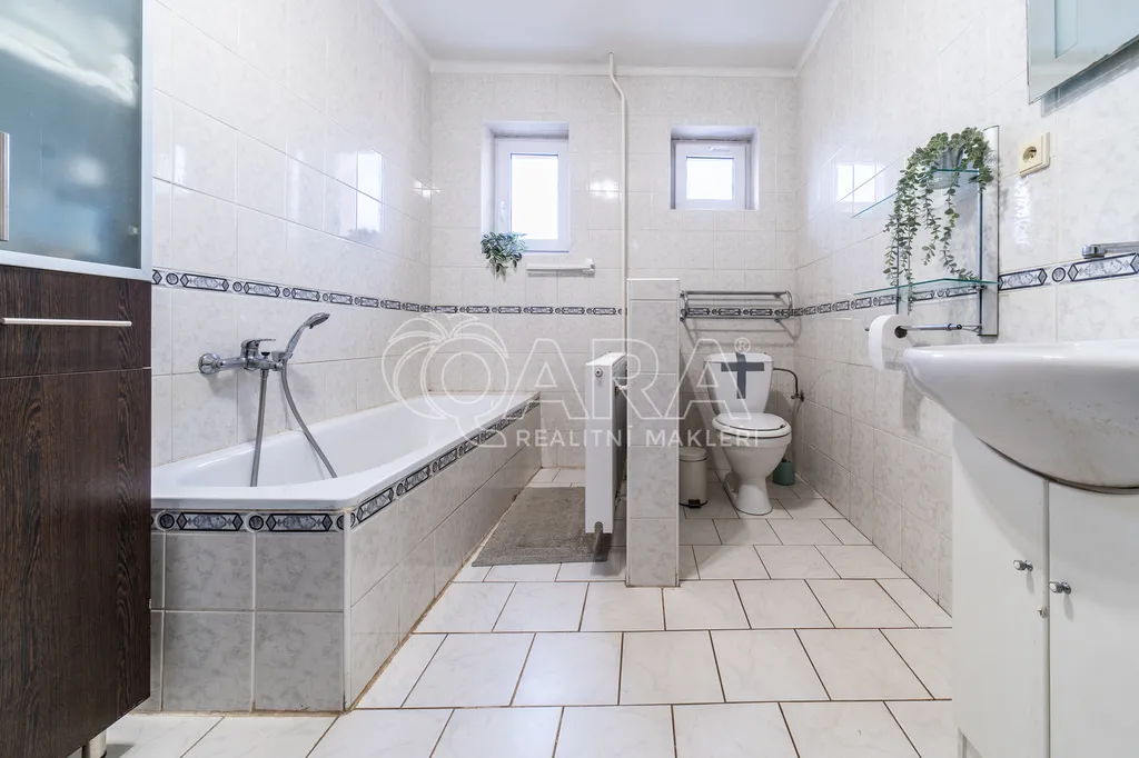 - v patře - 4 +1 - obytné plochy 120 m2 - chodba, obývací pokoj, ložnice, pokoj s šatnou, další pokoj, kuchyň, koupelna se vanou i sprchou + WC,