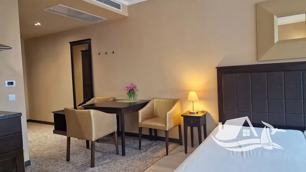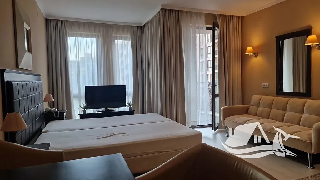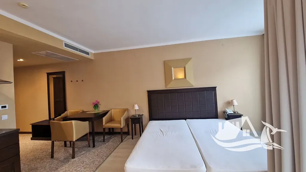 Jsou rána, kdy svět kolem zpomalí a člověk se nadechne s pocitem, že den má před sebou tolik možností. Otevřete dveře na balkon a ucítíte směs borovicové vůně a mořského vzduchu. Pod vámi se klidně leskne hladina bazénu a sluneční světlo jemně dopadá na celý areál. Právě tak začínají dny v tomto elegantním apartmánu 1+kk o velikosti 48,01 m², který se nachází ve čtvrtém podlaží pětihvězdičkového komplexu Royal Beach Barcelo na Slunečném pobřeží.