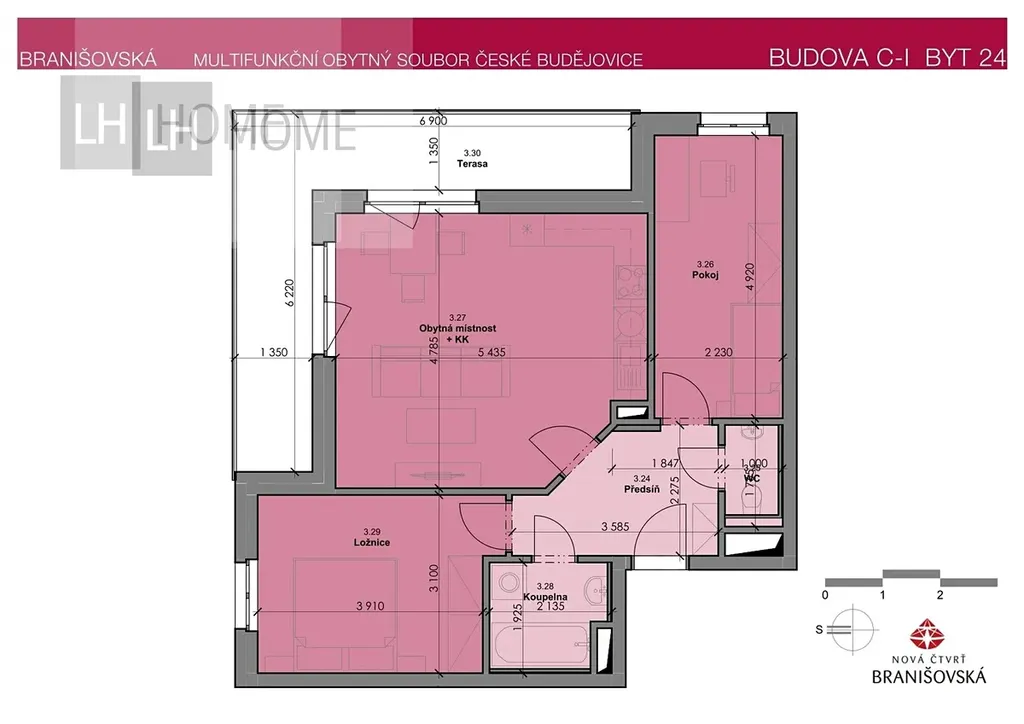 Byt se nachází ve 3. patře novostavby. Díky promyšlené dispozici nabízí pohodlné bydlení pro jednotlivce, páry i rodiny.