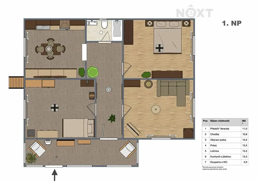 Dům disponuje třemi prostornými pokoji, které poskytují dostatek místa pro každého člena rodiny. Užitná plocha činí 102 m, možno vystavět i podkroví v domě na další pokoje.
