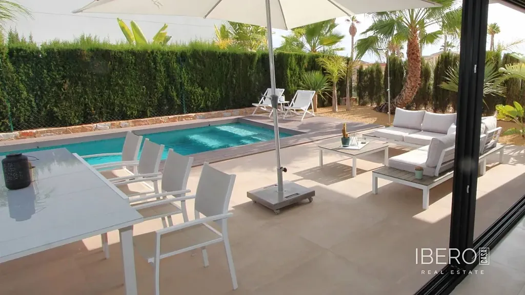Luxusní bydlení na pobřeží Costa Blanca: moderní vila se 3 ložnicemi, velkým bazénem a tropickou zahradou na prodej.Objevte tuto velkolepou moderní vilu na slunném pobřeží Costa Blanca ve Španělsku, která je k okamžitému nastěhování. Tato moderně navržená nemovitost, která stojí na rozsáhlém pozemku o rozloze 530 m², nabízí vše, co potřebujete k tomu, abyste si mohli naplno užívat středomořského bydlení. Vila je na prodej kompletně zařízená, což vám umožní užívat si svůj nový domov od prvního dne. se třemi prostornými ložnicemi a třemi elegantními koupelnami zaručuje tato vila pohodlí a soukromí pro vás i vaše hosty. Každý pokoj byl pečlivě navržen s použitím vysoce kvalitních materiálů a moderních povrchových úprav, což vytváří harmonické a luxusní obytné prostředí (jedna z ložnic se nachází v přízemí a má vlastní koupelnu). skutečným vrcholem této nemovitosti je její úžasný soukromý bazén, ideální pro relaxaci a osvěžující koupání v teplých letních dnech. Okolní zahrada nabízí dostatek prostoru k relaxaci, opalování a užívání si pobytu na čerstvém vzduchu. Jsou zde také ideální prostory pro venkovní zábavu, takže zde můžete trávit dlouhé letní večery s rodinou a přáteli.Vila se nachází v klidné a bezpečné oblasti, se snadným přístupem ke krásným plážím, obchodům, restauracím a veškerému vybavení, které nabízí pobřeží Costa Blanca.Pro golfové nadšence: Nenechte si ujít tuto jedinečnou příležitost pořídit si luxusní vilu v jedné z nejžádanějších oblastí Španělska. Kontaktujte nás ještě dnes pro více informací nebo pro sjednání prohlídky.