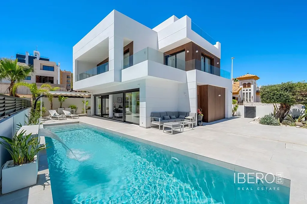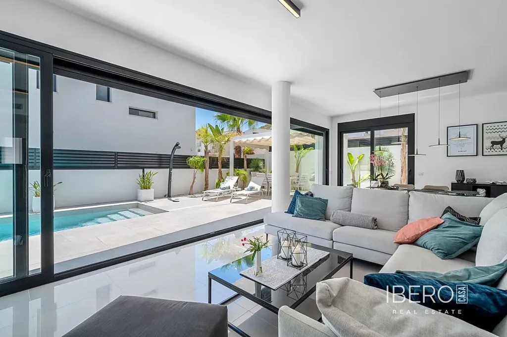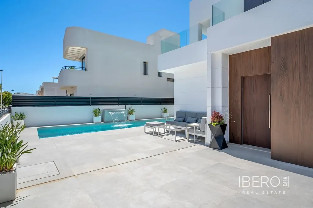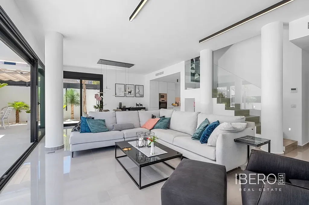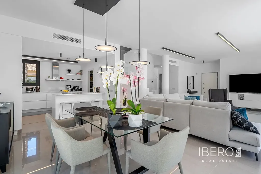 Tato moderní vila postavená v roce 2019 se nachází na pozemku o rozloze 347 m² a nabízí rafinovanou kombinaci moderní architektury a pohodlného bydlení. Dům o rozloze 194 m² na třech podlažích nabízí čtyři velkorysé ložnice a tři koupelny s dispozicí navrženou pro soukromí i funkčnost. Otevřená kuchyně přechází do jídelny a obývacího pokoje a vytváří světlé, prostorné prostředí s přímým vstupem do zahrady a na terasu přes velké posuvné skleněné dveře, které lákají k přirozenému světlu po celý den.