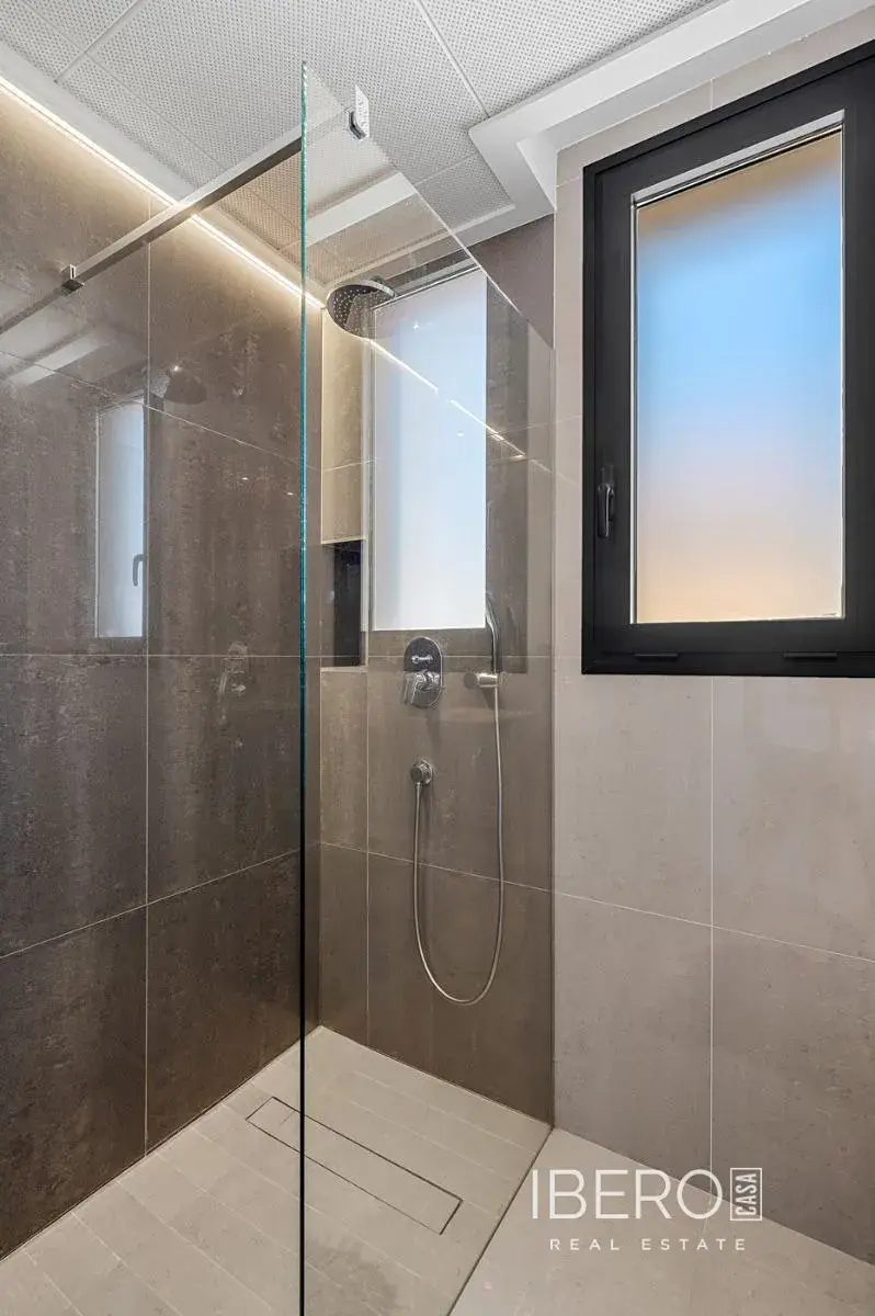 V patře je hlavní apartmá se šatnou a přístupem na soukromý balkon, zatímco horní úroveň doplňují další dvě ložnice s vestavěnými skříněmi. V přízemí se nachází čtvrtá ložnice, která je ideální pro hosty nebo flexibilní využití. Mezi další vymoženosti patří samostatná prádelna, úložný prostor a soukromé parkování na pozemku. Díky promyšlenému uspořádání, kvalitním povrchovým úpravám a vynikající orientaci představuje tento dům moderní životní styl jen pár minut od moře.