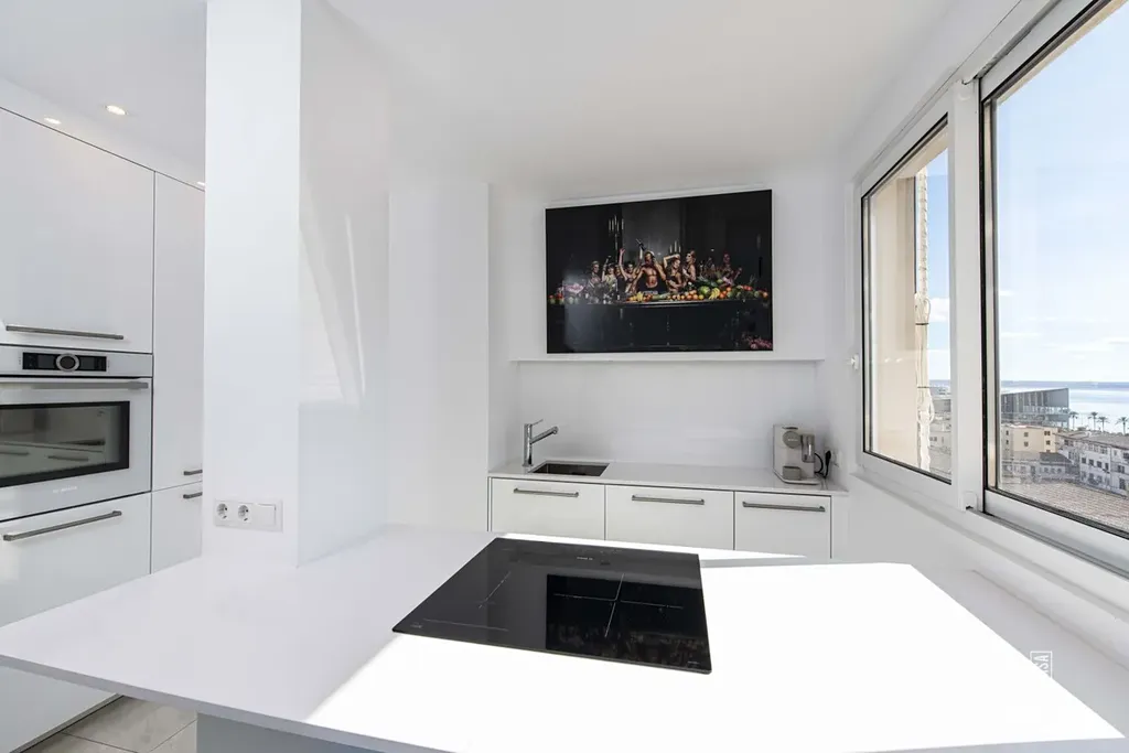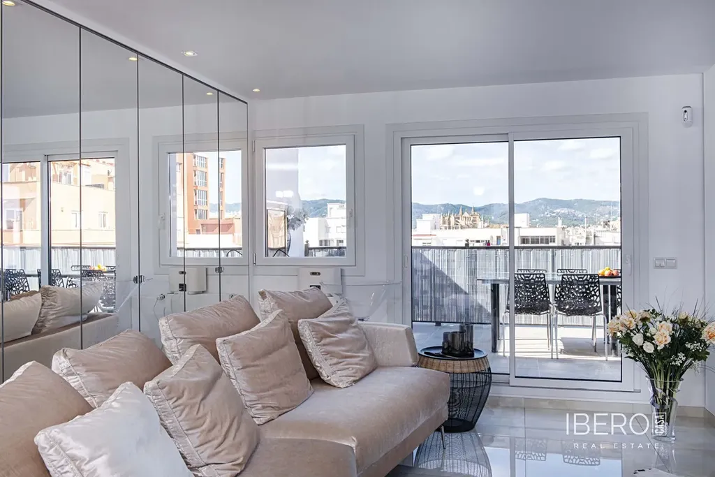 Z terasy o rozloze 90 m2 máte neuvěřitelný výhled na katedrálu, palmský přístav, hory a moře. K dispozici je také druhý zasklený balkon.