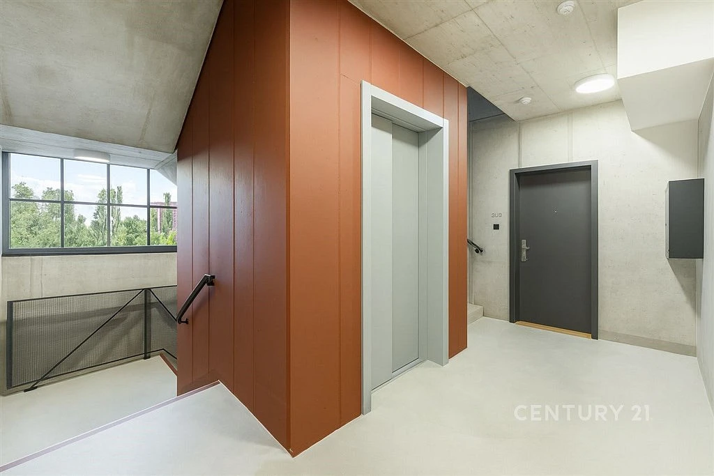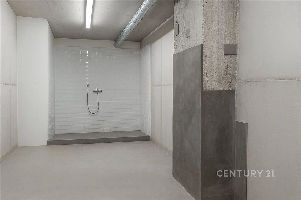 Byteček v ultraindustriálním stylu, navazující na historii původního objektu továrny, je vybavený kuchyňskou linkou s vestavěnými spotřebiči: vysokou lednicí s mrazákem, myčkou, troubou, indukční varnou deskou a digestoří. Do prostorné koupelny se sprchovým koutem se vejde pračka i sušička, vybavena je základními doplňky.