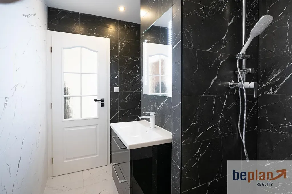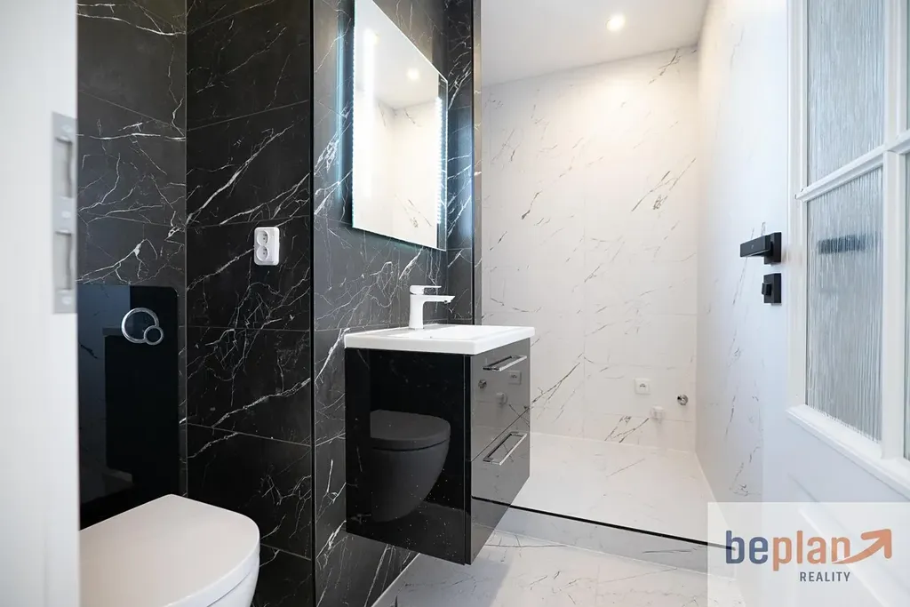 Byt prošel rozsáhlou rekonstrukcí elektřina je kompletně v mědi, voda v plastu, velkoformátová dlažba dodává interiéru moderní eleganci a koupelna v kombinaci černých obkladů a bílé dlažby v imitaci mramoru dodá bytu jedinečnost. Nic zde nezůstalo náhodě.