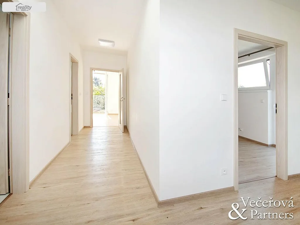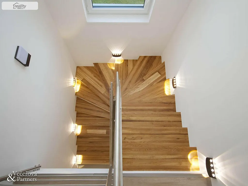 Novostavba rodinného domu je třípodlažní. V přízemí se nachází prostorné zádveří, obývací pokoj spojený s kuchyní, která je plně vybavená značkovými spotřebiči, pokoj pro hosty a koupelna s WC. Z obývacího pokoje je vstup na prostornou terasu orientovanou na jih. Po schodišti se dostanete do patra, kde jsou 3 ložnice, samostatné WC a koupelna se sprchou a vanou.