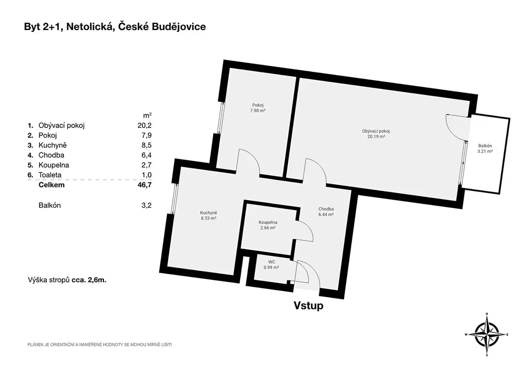Pronájem bytu 2+1, České Budějovice, Netolická, 47 m2