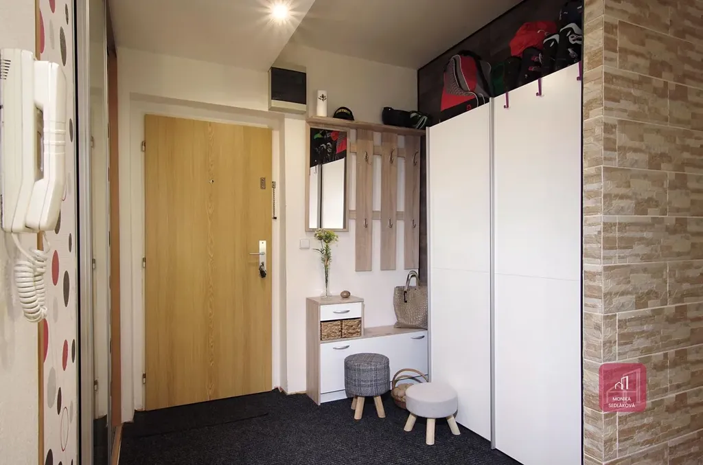 Vcházíte do prostorné předsíně s velkým úložným prostorem o výměře 7,3 m2.