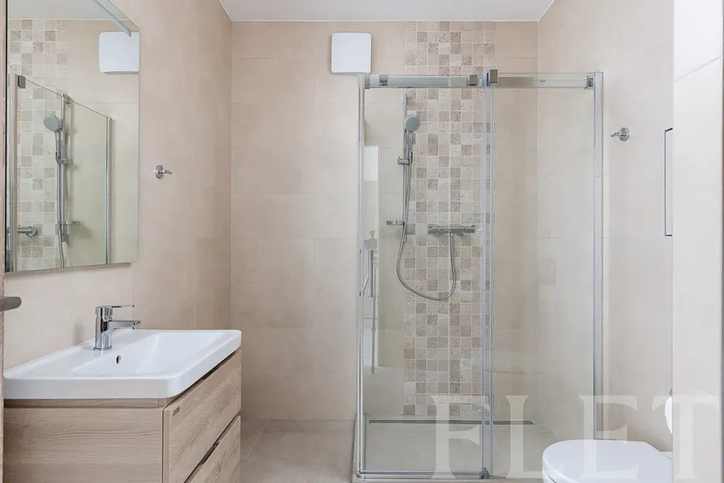 Je ve vašem hledáčku prostorný byt s dostatkem denního světla a velkou lodžií? Je vaší podmínkou garážové stání? Pak právě pro vás je tato nabídka v podobě pronájmu bytu 2+kk o krásné výměře 65 m2 v novostavbě v pražských Letňanech. Tento nestandardně prostorný byt s lodžií o velikosti 23 m2 kolem celého bytu vás zajisté nadchne. Velký obývací pokoj vám poskytne dostatek místa na jídelní kout a obývací část, kam se nemusíte bát umísit i velkou rohovou sedačku. Místo ideální pro rodinné oslavy či posezení s přáteli. Krásná designová kuchyně je vybavena zabudovanou myčkou nádobí i elektrickou troubou. Ložnice je oddělená, můžete se sem však také dostat přes prostornou rohovou lodžii. Koupelna se sprchovým koutem je společná s toaletou. Úložné prostory zajistí jak praktická komora přímo v bytě, tak velká sklepní kóje (5 m2).