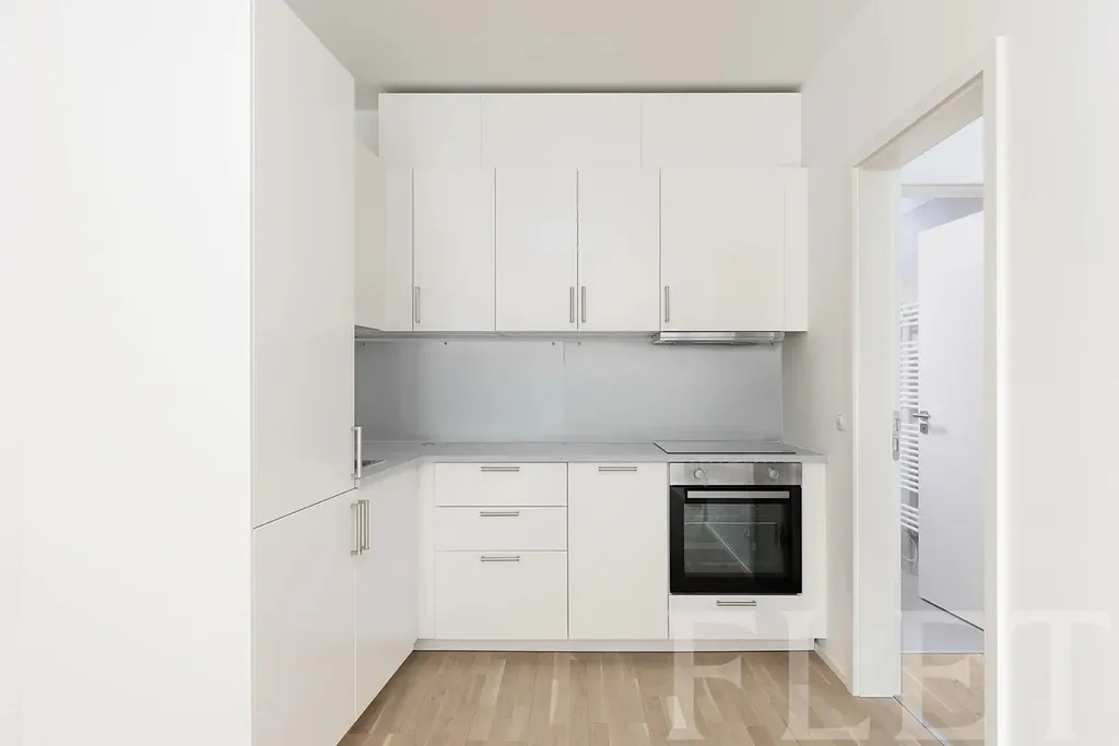 Moderní kuchyňský kout je vybavený všemi nezbytnými vestavěnými spotřebiči vč. myčky, lednice, trouby a indukční varné desky. V pokoji je prostor pro obývací i jídelní část, druhý pokoj vám krásně poslouží jako ložnice. Okna obou pokojů jsou směřována do klidného vnitrobloku. V designové koupelně s toaletou najdete sprchový kout a pračku naleznete na chodbě bytu. Vše je laděno do světlých tónů, tudíž při vybavování můžete popustit uzdu vaší fantazii. Pro uložení sezónních věcí krásně poslouží prostorný sklep. K bytu náleží také garážové stání přímo v domě.