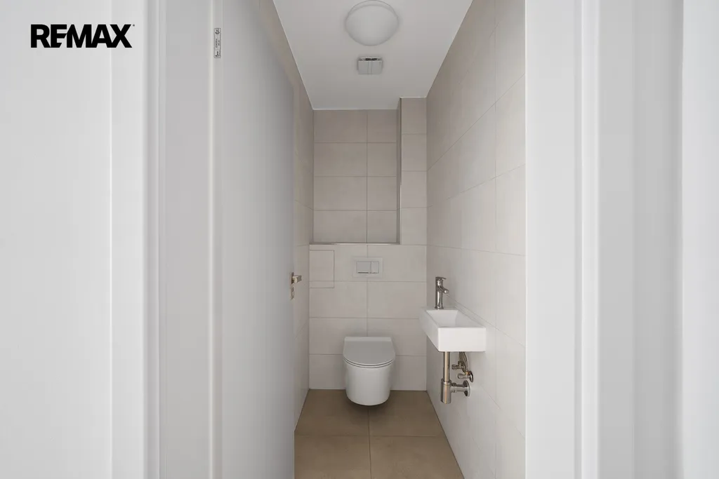Dispozičně tento byt sestává z chodby, obytné místnosti s kuchyňským koutem a vstupem na terasu, ložnice, koupelny se sprchovým koutem a samostatné toalety.