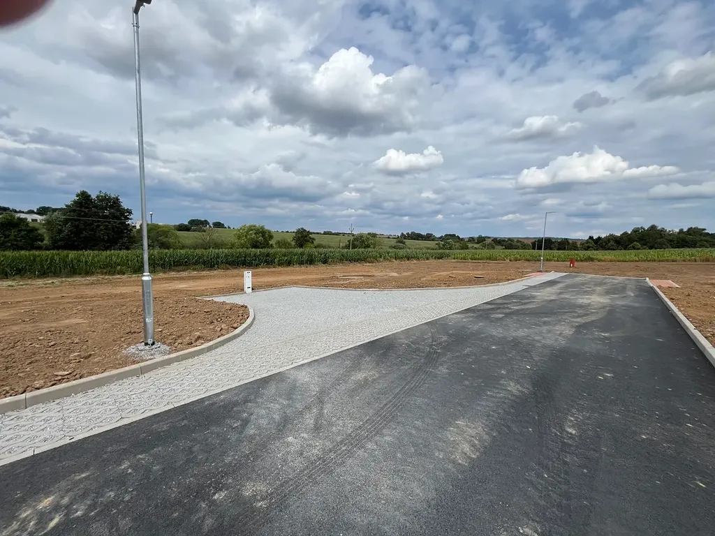Pozemek je kompletně zasíťovaný - přípojky jsou vytažené přímo na pozemek vodovodní šachta, kanalizační šachta, elektro přípojka (již žádné další poplatky za připojení). K pozemku vede nově postavená asfaltová komunikace s veřejným osvětlením.