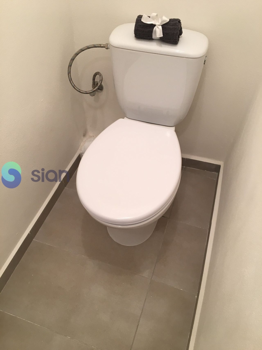 Koupelna s vanou a umyvadlem a možností připojení pračky, toaleta je odděleně. Kuchyňská linka je vyrobena na míru a je opatřena elektrickým sporákem a elektrickou troubou.