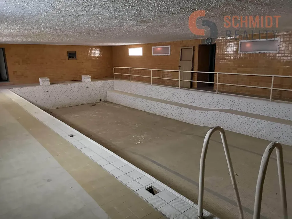 zde se nachází prostorný sál se zázemím vč. velkokapacitní kuchyně, bar, klubovna, šatny, sociální zázemí, sauna s chladícím bazénkem, plavecký bazén s délkou 12 m, 2 kuželkové dráhy…