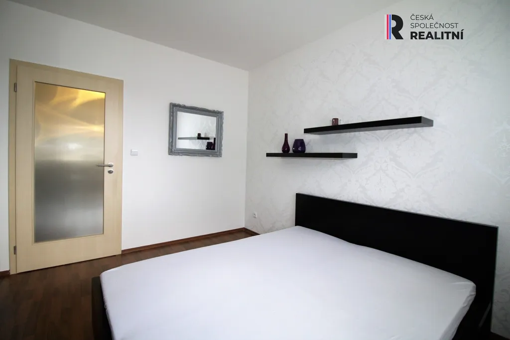 Ložnice je vybavena manželskou postelí, vestavěnou skříní, policemi a má vstup na balkon s výhledem do klidného vnitrobloku.