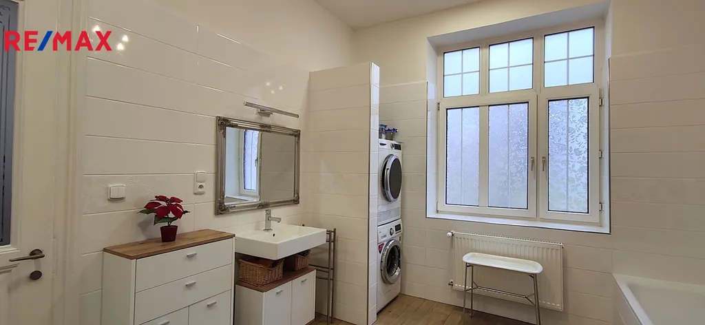 V přízemí je k dispozici prostorná kuchyně, obývací pokoj s kachlovými kamny, druhý velký pokoj s možností podnikání, samostatné wc, koupelna s vanou, saunou a šatnou. Všechny místnosti jsou pohodlně přístupné z prostorné chodby. Ve druhém nadzemním podlaží najdeme dětský pokoj s šatnou, prostornou ložnici se šatnou, menší pokoj pro hosty, pracovnu, samostatné wc a koupelnu se sprchovým koutem. VVše pohodlně přístupné z prostorné chodby. V domě jsou zachovány původní prosklené dřevěné dveře a zárubně, podlahy v pkojích jsou parketové, v chodbách nová dlažba.
