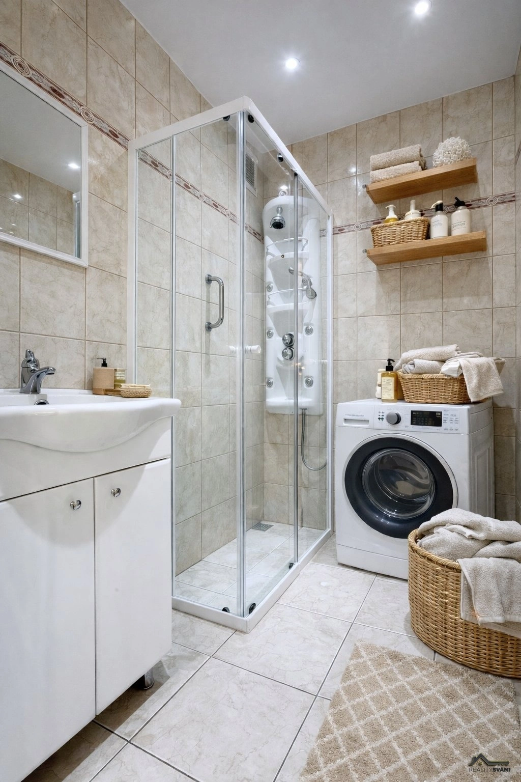 O komfort se postará klimatizace, která Vám jak zatopí a tak Vás i naopak schladí v teplém počasí. Další výhodou jsou venkovní rolety, které zajistí příjemnou teplotu po celý rok.