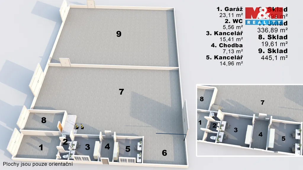 Celková plocha až 1 072 m² s možností pronájmu pouze části haly.