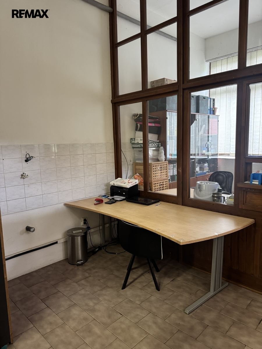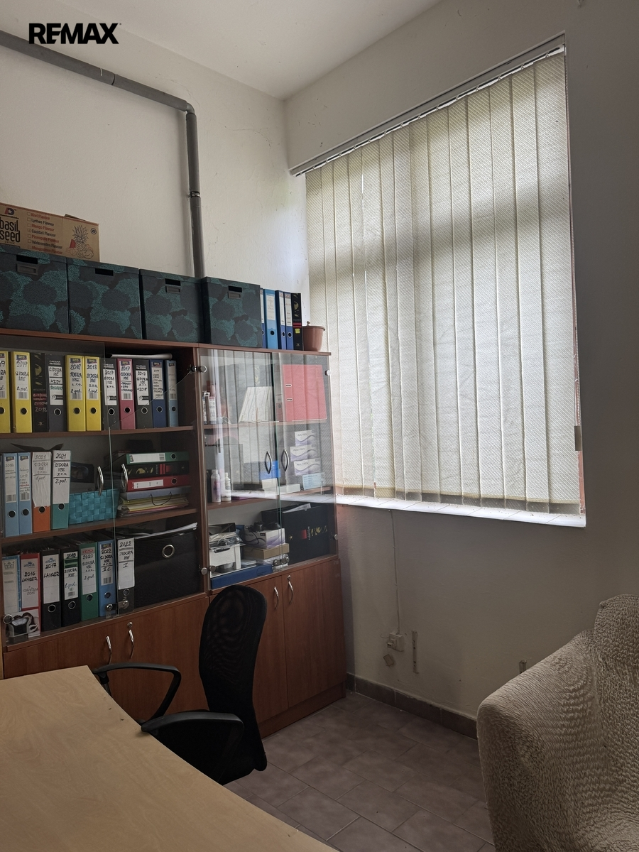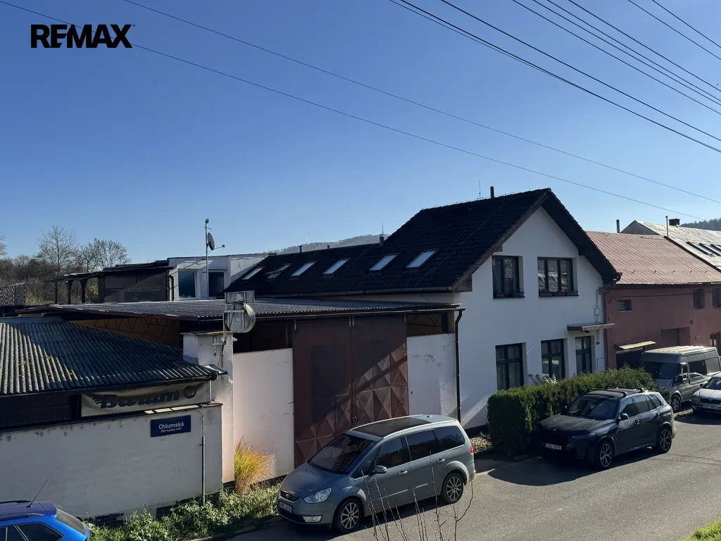 Součástí domu je zastřešená dílna/sklad , vytápěné prostory kanceláří a dalších skladů.