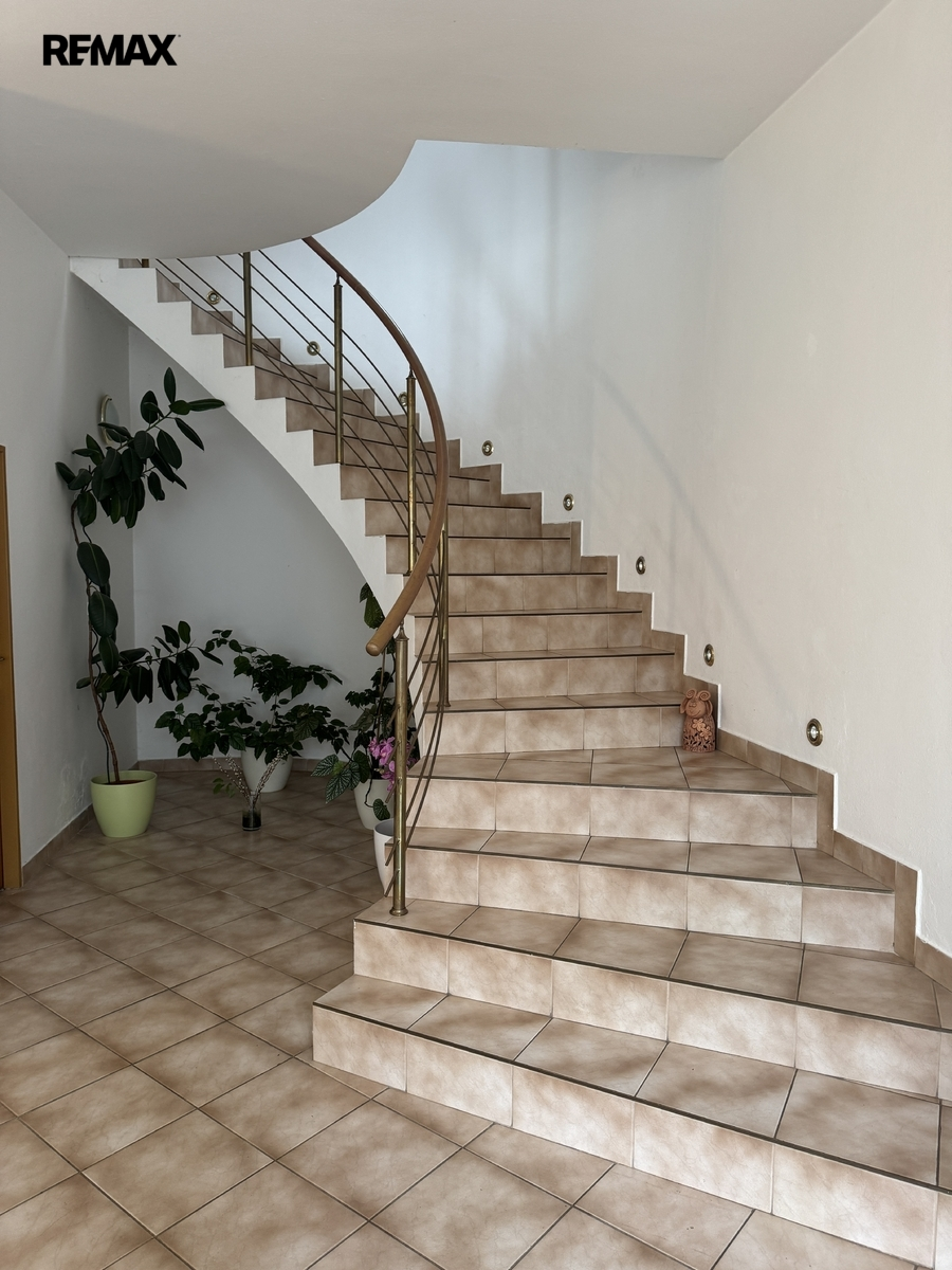 V přízemí se nachází vstupní hala se samostatnou toaletou. V 1.NP je bytová jednotka o velikosti 3+KK s vnitřním bazénem a terasou. Místnost s bazénem se dá předělat na další obytnou místnost. Tato jednotka v 1.NP může sloužit jak pro bytovou potřebu , tak i jako kanceláře.