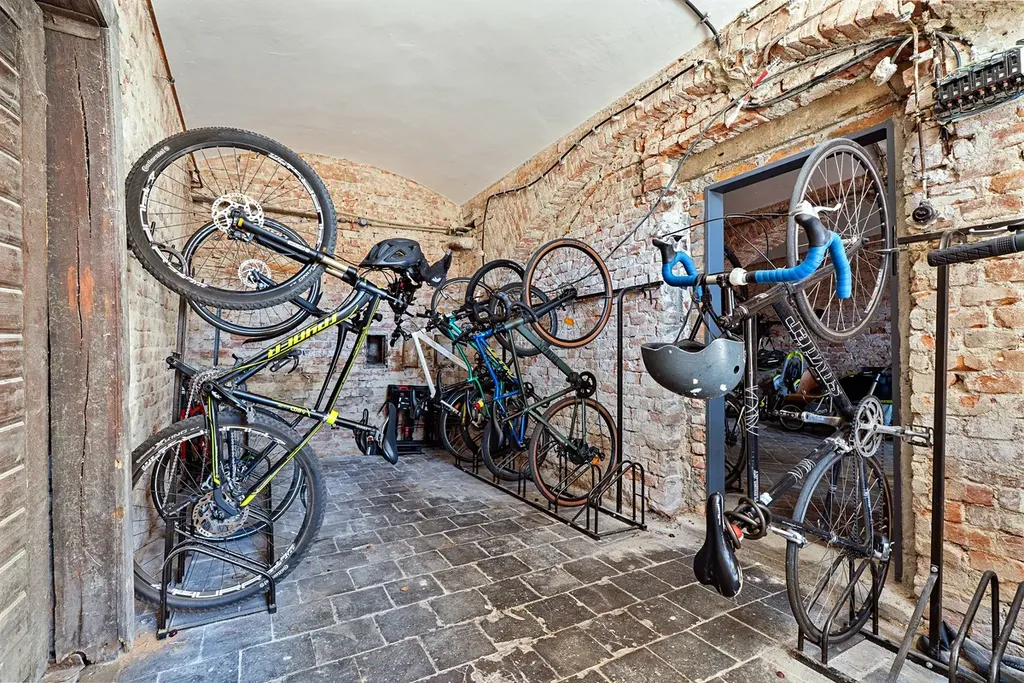 Kromě poměrně velkého sklepa je možnost využít společné uzamykatelné kolárny ve vnitrobloku domu, kde najdeme také parkovací místa. Parkovací místo není součástí prodeje, jedná se o možnost postoupení pronájmu jednoho parkovacího místa.