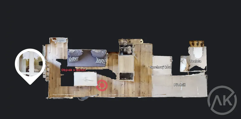 - je fakt malý, přesně 17,2m2, na jednom konci vejdete dveřmi a na druhém vykouknete na balkon,
