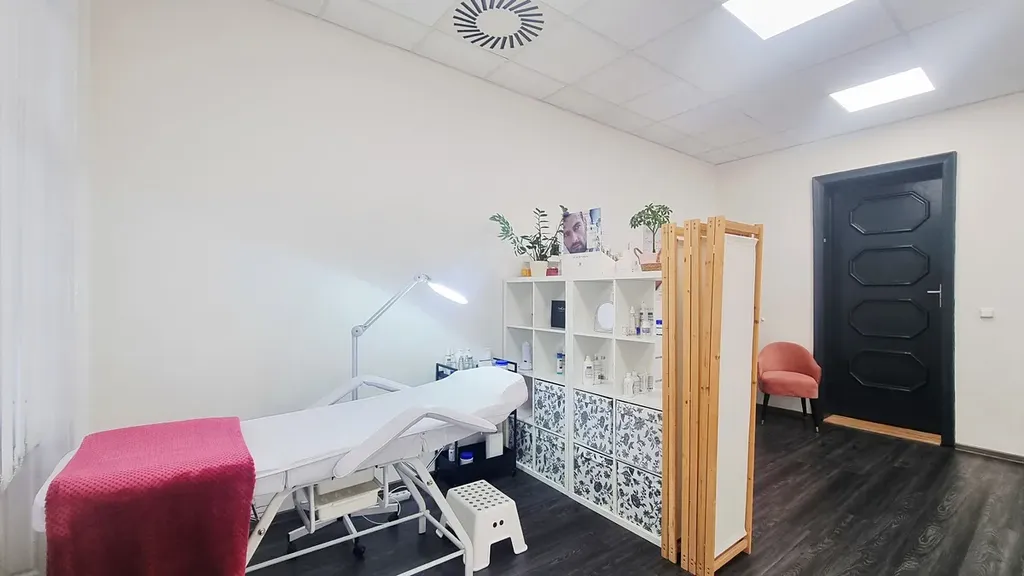 Kosmetický salón (30 m²) se nacházejí v 1. patře kompletně zrenovované budovy se dvěma výtahy a denní recepcí.