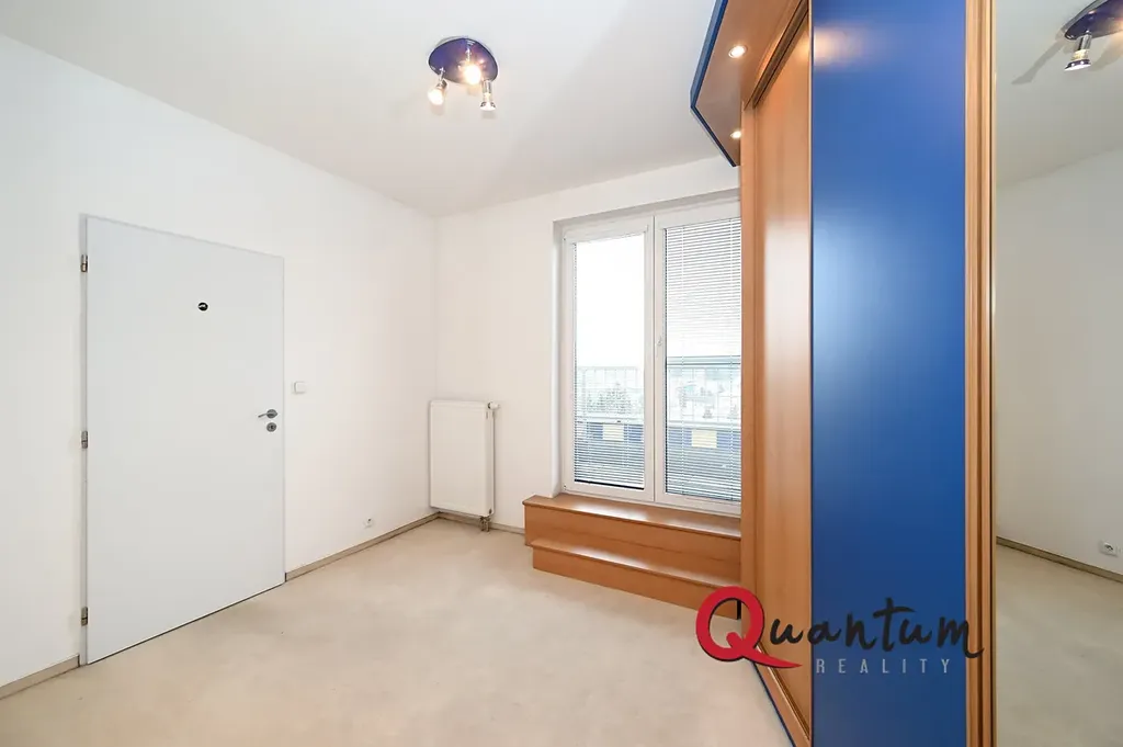 Po vstupu do bytu se ocitnete v centrální chodbě vybavené vestavěnou šatní skříní s dostatkem úložných prostor. Následně vstoupíte do světlého a zařízeného obývacího pokoje s kuchyňskou linkou, odkud je přístup na první terasu. Ložnice je samostatná, klidná, s vestavěnou šatní skříní a osvětlením, a nabízí vstup na druhou, částečně zasklenou terasu.