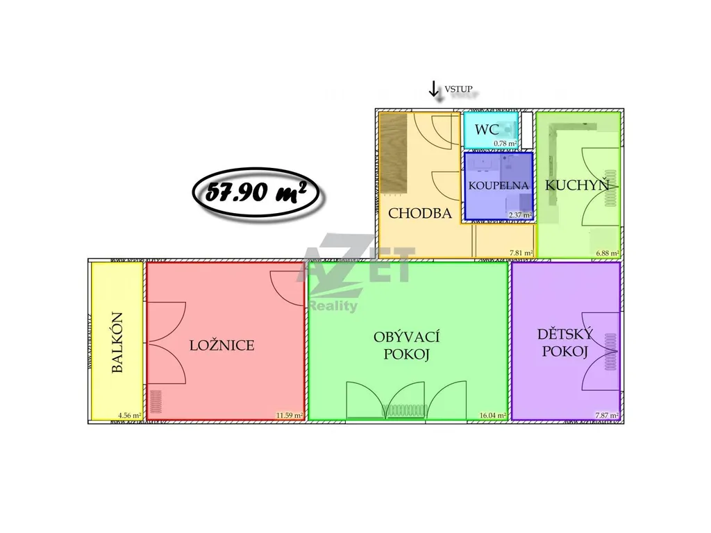Celková plocha bytu - 58 m2 (bez sklepní kóje)