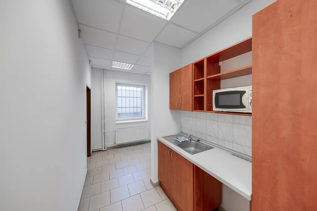 Kanceláře jsou umístěny v 2NP a mají bezpečnostní hlídací systém. K dispozici budete mít soukromý, uzavřený prostor se 2 kancelářemi (60 m² a 30 m²), zázemí s kuchyňkou, sprchou a WC. Kanceláře je možno využít na různé účely - projekční kanceláře, internetové obchody, IT firmy a další firmy poskytující rozlišné služby v oblasti nemovitostí, školení apod.