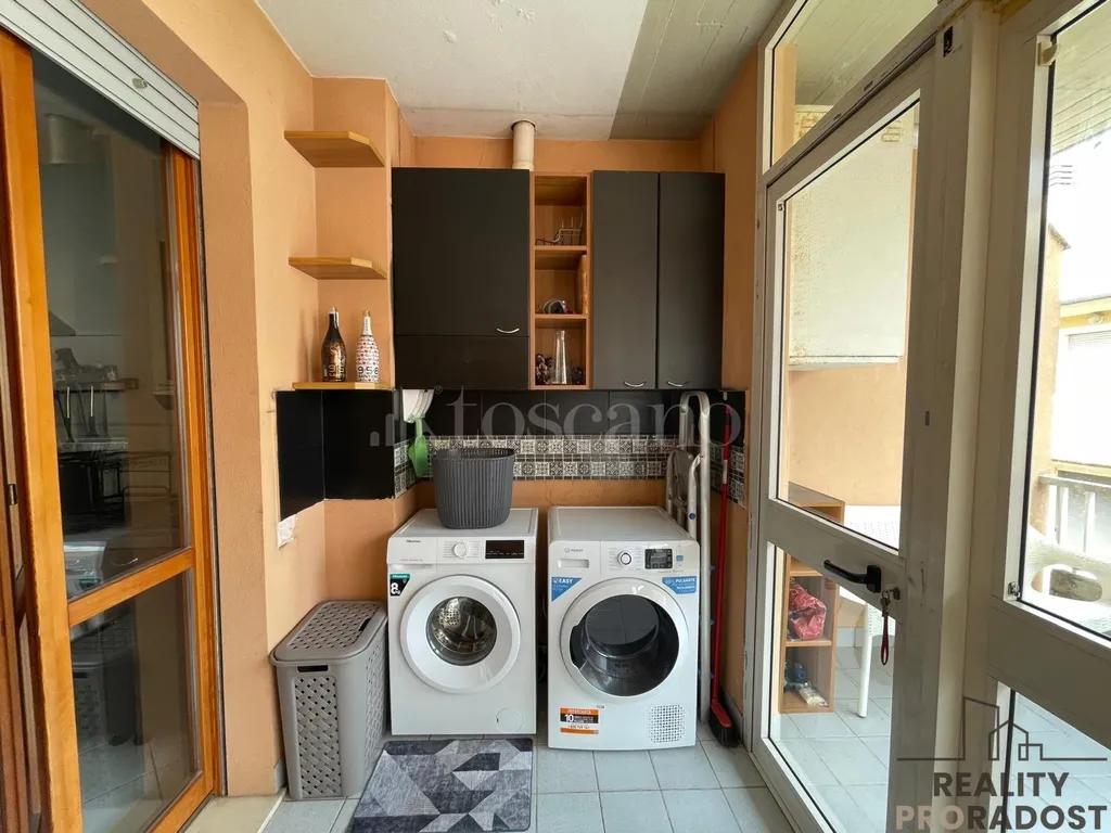 Nabízíme útulný dvoupokojový apartmán kompletně zařízení s vlastní garáži a prosluněnou terasou pro krásné rána a večery.