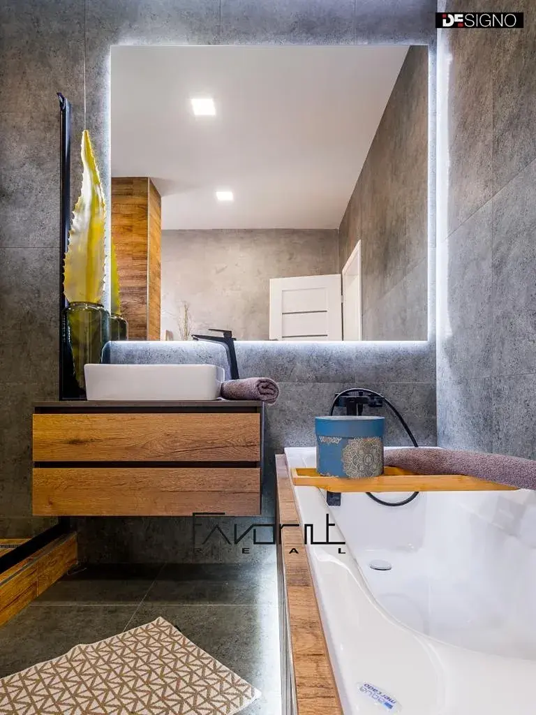 • koupelna s vanou, sprchovým koutem, designovým osvětlením a novou sanitou