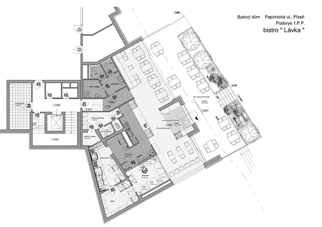 Naše společnost BC Real a.s. dokončila jako developer na konci roku 2019 stavbu bytového domu na adrese Papírnická 10, Plzeň. Součástí bytového domu jsou i nebytové jednotky. Předmětem pronájmu je nebytová jednotka umístěná v 1.P.P. na jižní straně domu orientovaná směrem ke staré papírně. Nebytová jednotka byla od počátku tj. zpracování architektonické studie koncipovaná jako bistro s pekárnou.