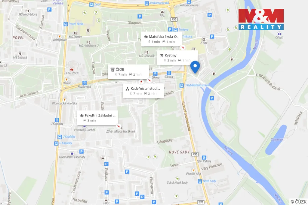 Nabízíme vám k dlouhodobému pronájmu krásný slunný byt 3+kk, nacházející se v prvním zvýšeném podlaží cihlového domu s výtahem. Byt je bezbariérový a má samostatné pokoje. V okolí je veškerá občanská vybavenost.(MŠ, ZŠ, MHD, Galerie Šantovka). Zařízený je kuchyňskou linkou s elektrickou vestavnou troubou a plynovým sporákem. V ložnici je vestavěná skříň. K bytu náleží sklepní kóje a společné sklepní prostory. Nájemné 15 tisíc Kč, měsíční náklady za vodu a topení 3654,- Kč. Elektřina a plyn budou přepsané na nájemníka (elektřina 2380,- Kč a plyn 440,- Kč). Vratná kauce 26 tisíc Kč, RK za zprostředkování 15 tisíc Kč. Jen pár metrů od domu jsou krásné procházky kolem řeky Moravy. Parkování je možné u domu na ulici. O více informací a prohlídku kontaktujte makléře.