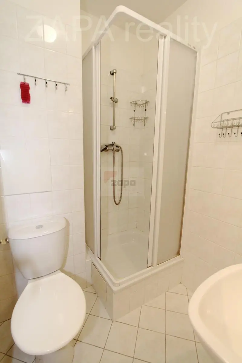 Kuchyňský kout je volně propojen s obývacím pokojem, kde je vstup na balkon. Koupelna je se sprchovým koutem a WC, je zde přípojka na pračku. Na podlahách je nová vinylová podlaha nebo dlažba.
