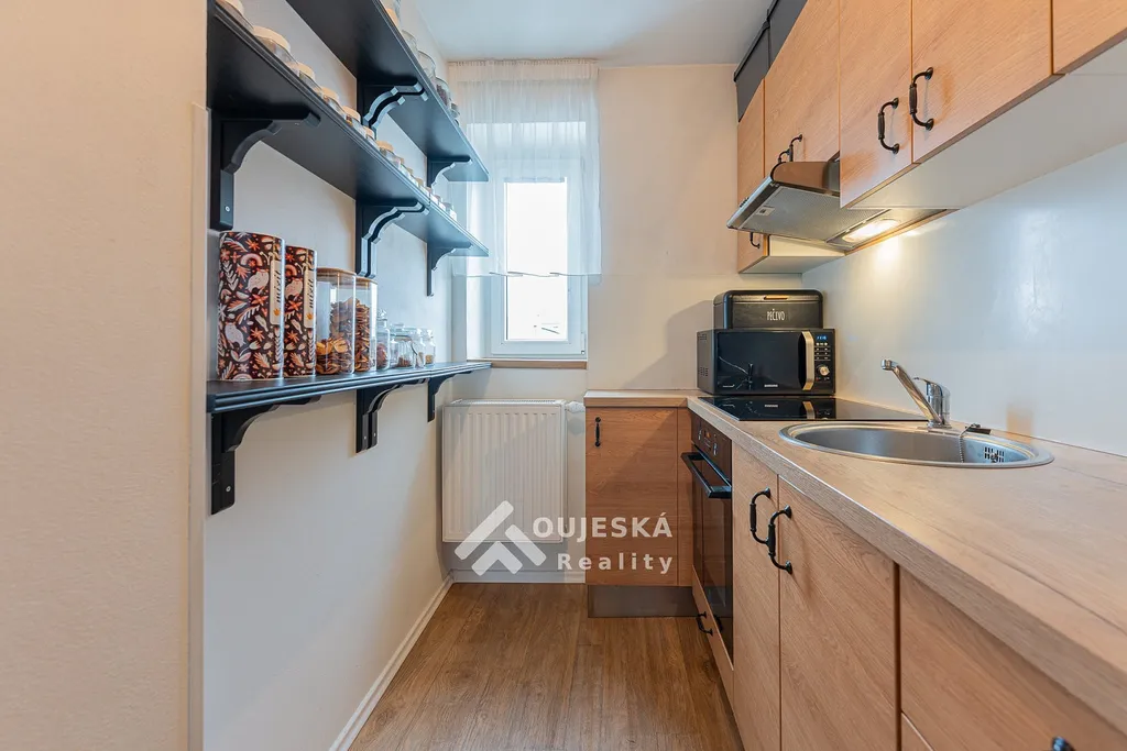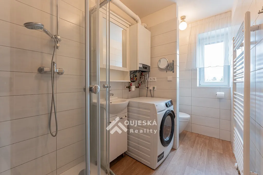 Byt se nachází ve druhém nadzemním podlaží cihlového bytového domu, součástí je kuchyňská linka, koupelna se sprchovým koutem a disponuje dvěma sklepy. V celém interiéru najdete kvalitní plovoucí podlahu a moderní provedení, díky kterému je byt připravený k okamžitému nastěhování. Jednou z velkých výhod je také vlastní zahrada přímo za domem, kde můžete využít pergolu a zahradní domek.