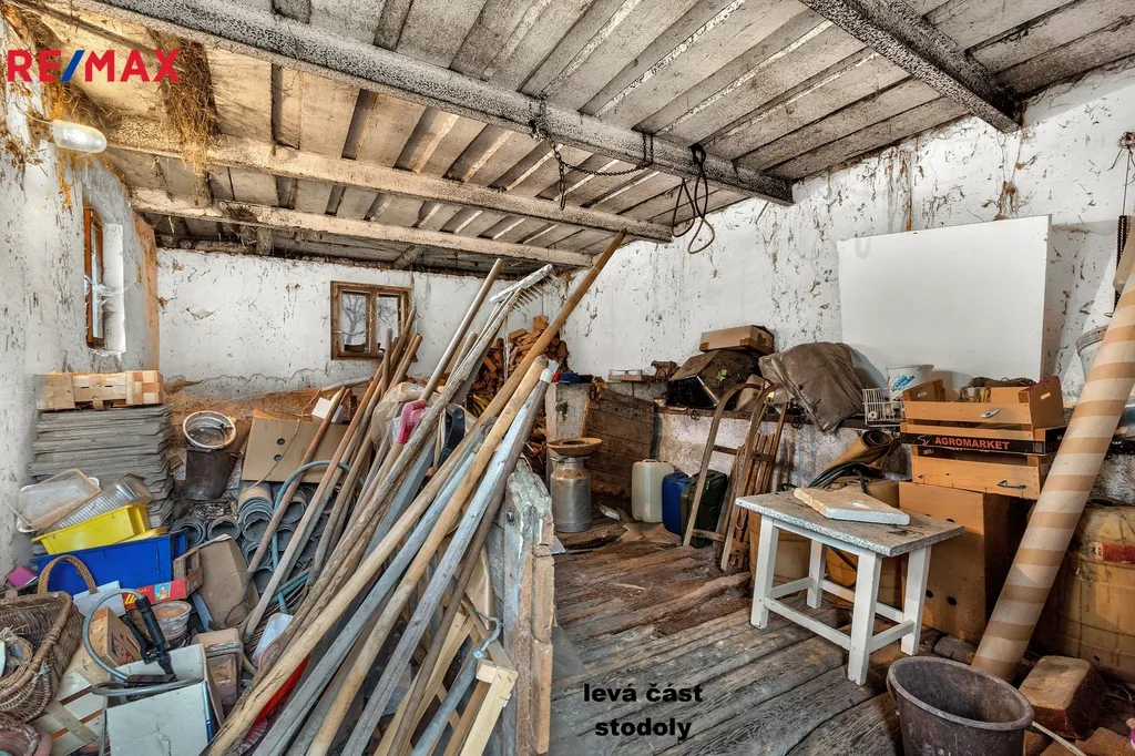 Na pozemku se dále nachází kamenné hospodářské stavby a velká stodola o ploše 147 m² (stáj, sklady, garáž), vhodná k rekonstrukci a dalšímu využití.